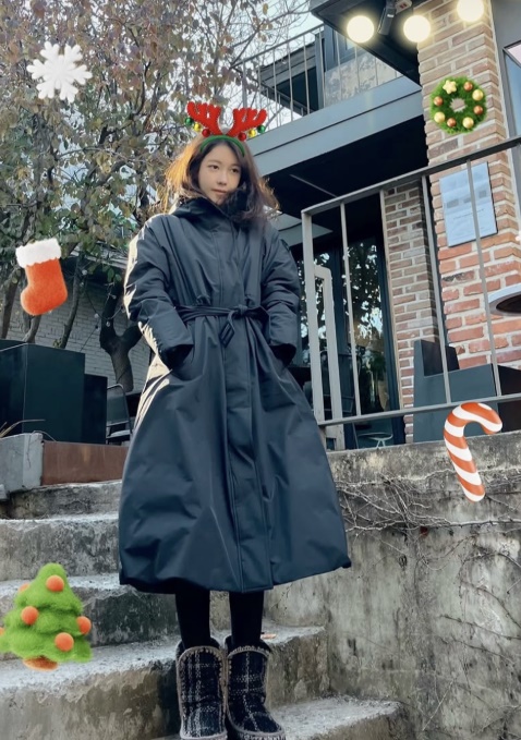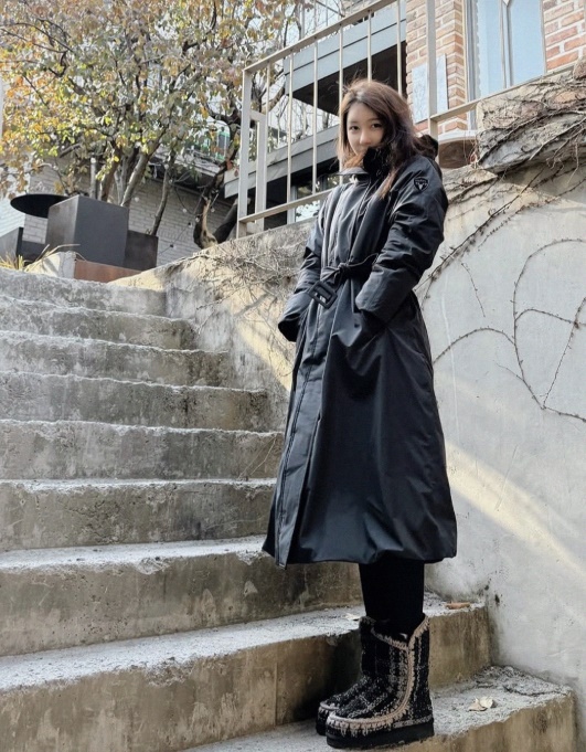 여배우 이지아가 입은 노비스 롱패딩은 슬림하고 고급스럽고 여성스러운 라인을