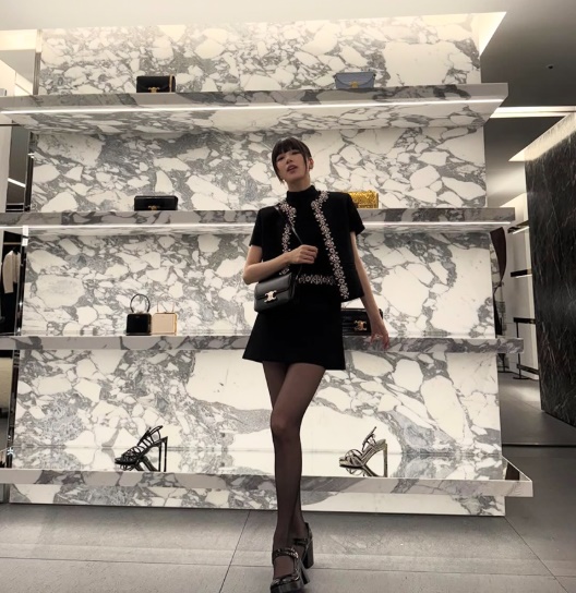 수지의 셀린느 코디를 보면 고급스러운 분위기에 압도당하는 것 같아요.